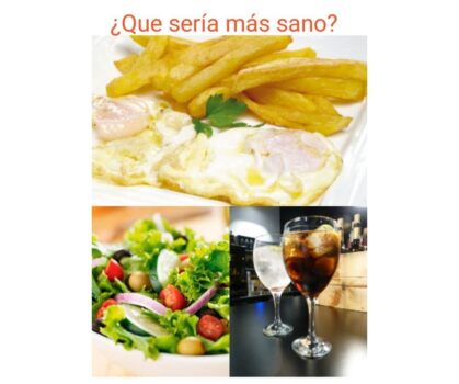 ¿Cual elección seria más sana? Indudablemente las patatas fritas con huevos.